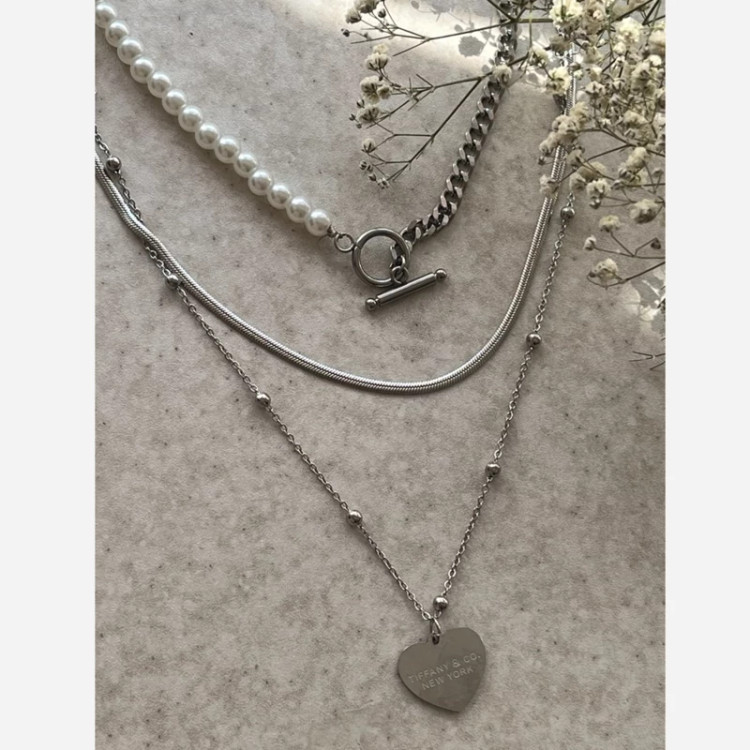 گردنبند زنانه 3لاین با آویز تیفانی در دورنگ نقره ای و طلایی