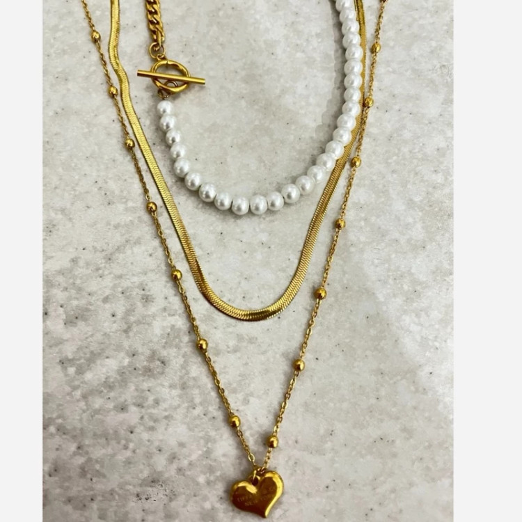 گردنبند زنانه 3لاین استیل با دو رنگ نقره ای و طلایی با آویز تیفانی