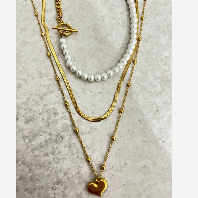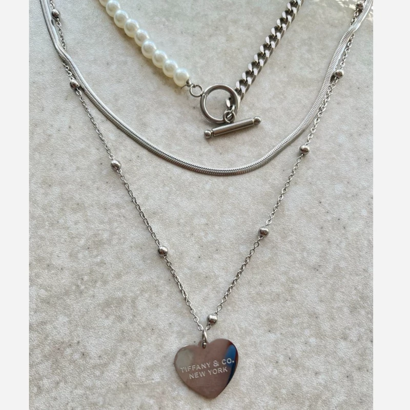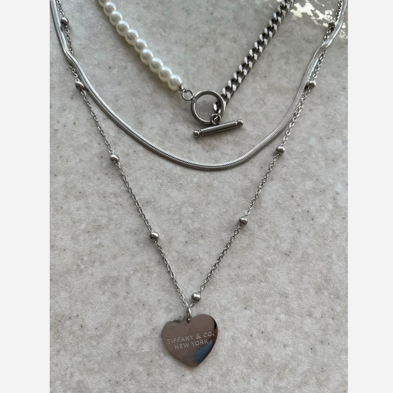 گردنبند زنانه 3لاین با آویز تیفانی در دورنگ نقره ای و طلایی