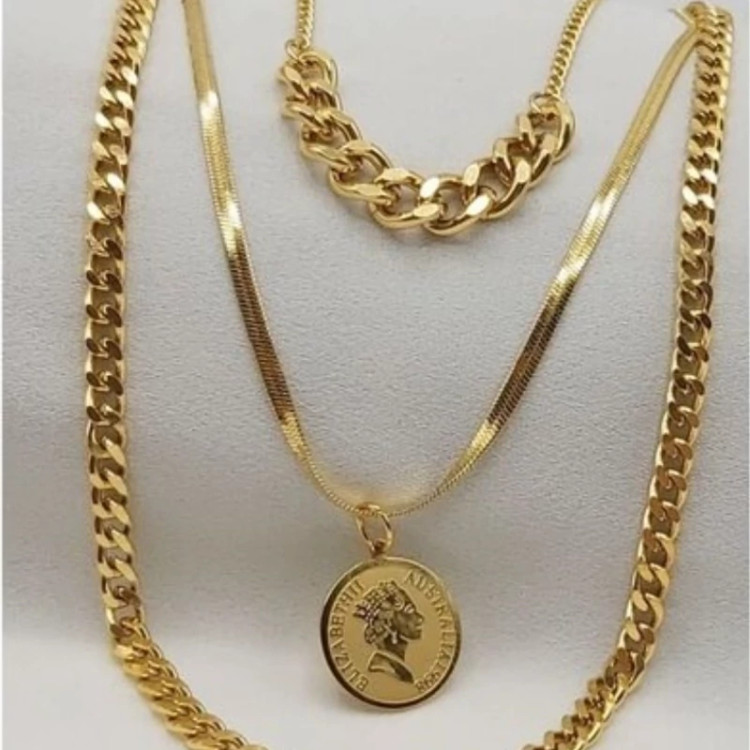 گردنبند زنانه 3لاین ماری الیزابت جنس استیل و رنگ ثابت