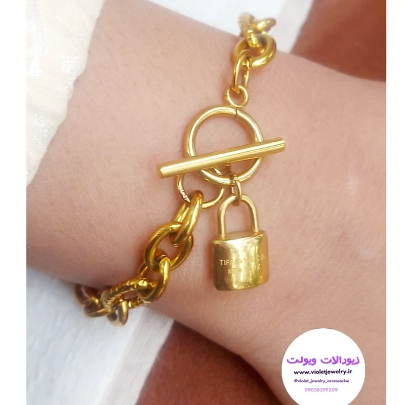 نیم ست زنانه با آویز قفل طلایی استیل رنگ ثابت جدید کد 3553