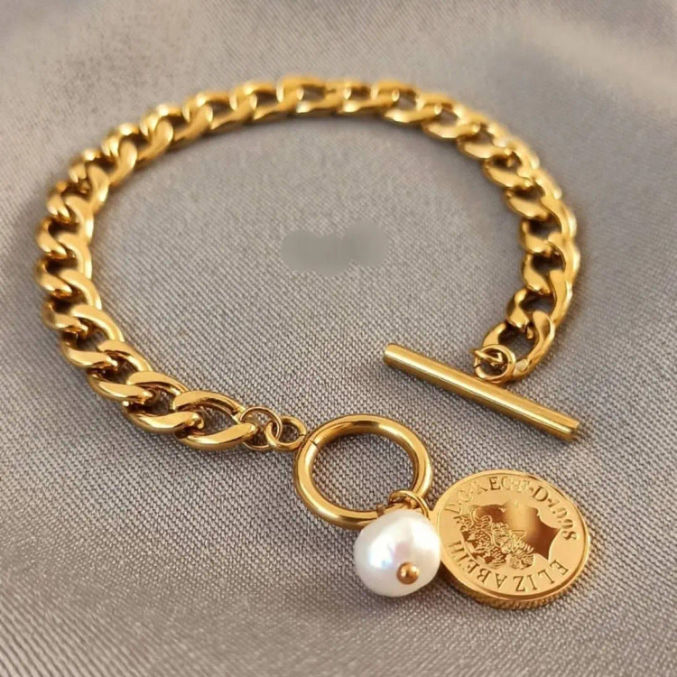 دستبند خیلی شیک کارتیر با آویز سکه الیزابت و مروارید جنس کار تمام استیل با ضمانت رنگ و کیفیت دستساز سایز و اندازه ی کار طبق سلیقه مشتری امکان تغییر مدل طبق سلیقه مشتری امکان ساخت گردنبند و گوشواره و انگشتر ست و سفارش ست کامل برا راهنمایی بیشتر پیام بدین در خدمتم🌹