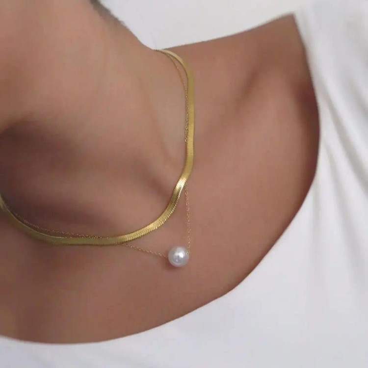 گردنبند استیل دو لاین ماری و مروارید ( ویولت گالری) کد ۱۲۶۷