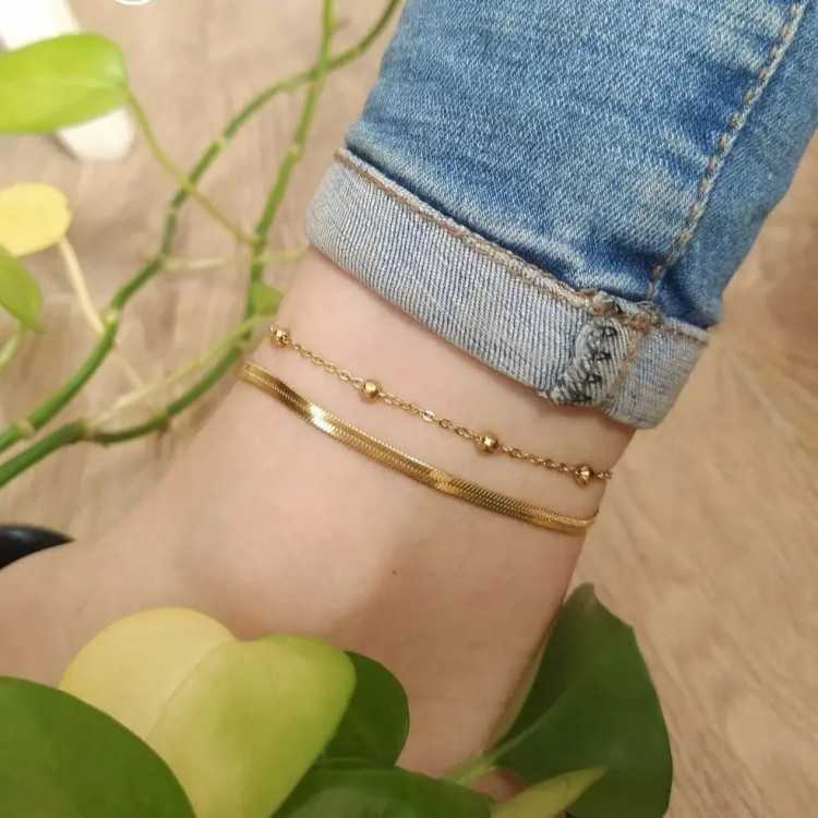 پابند استیل دو لاین زنجیر ماری و توپی ظریف ( ویولت گالری) کد ۷۰۸۶