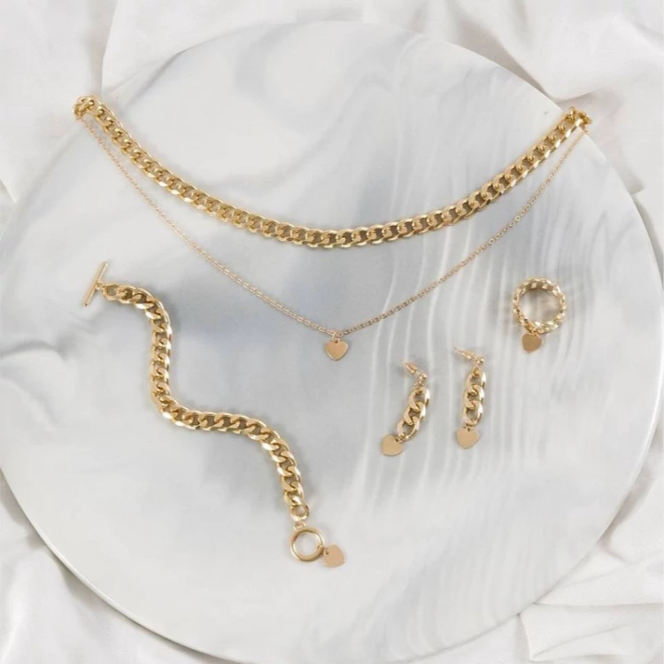 ست زنانه با آویز قلبی جنس استیل رنگ ثابت طلایی و نقره ای دارای قفل تی