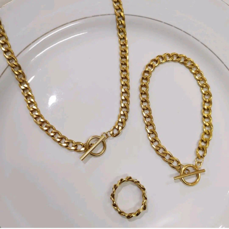 ست گردنبند دستبند انگشتر کارتیر تخت با قفل تی استیل زنانه (ویولت گالری) کد ۱۹۶۳