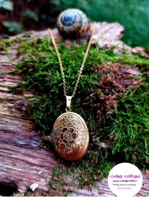 لاکت جا عکسی مدل بیضی طلایی با زنجیر بلند سایز بزرگ کد ۹۹۹۰
