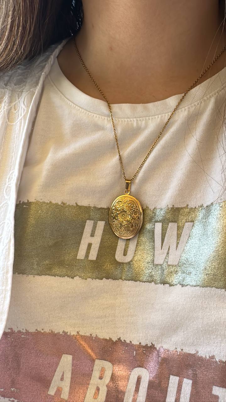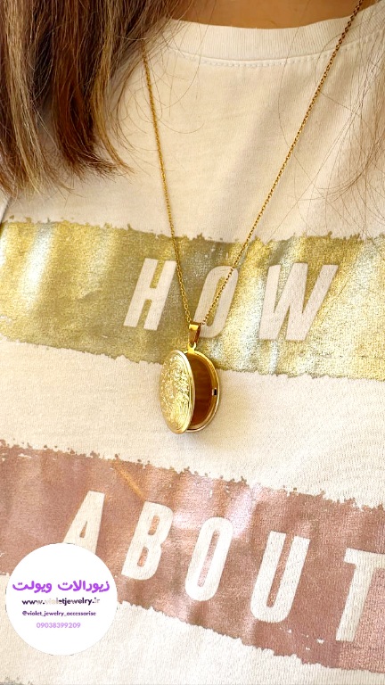 لاکت جا عکسی مدل بیضی طلایی با زنجیر بلند سایز بزرگ کد ۹۹۹۰