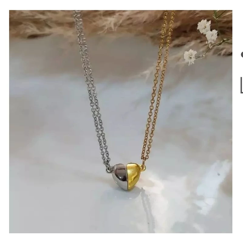گردنبند دوتایی قلبی مگنتی آهنربایی گردنبند دوستی