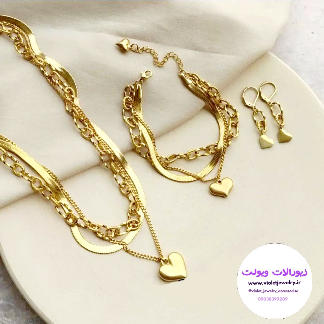 ست زنانه ۳ رج ترکیبی و دستساز میباشد جنس استیل درجه ۱ و از بهترین متریال در ساخت آن استفاده شده است.