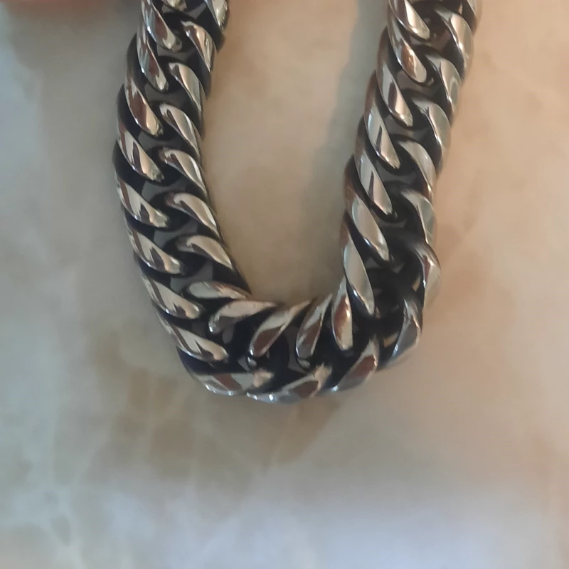 گردنبند مردانه زنجیری آجری نقره ای و طلایی 60 سانتی درشت استیل رنگ ثابت