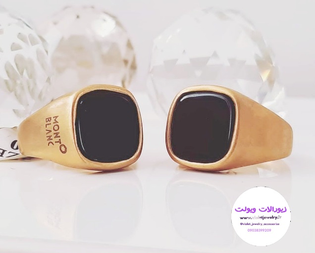انگشتر استیل مردانه طلایی سنگ مشکی برند مونت بلانس کد ۵۰۰۲۲